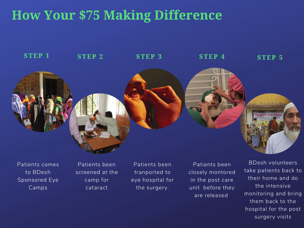 BDesh Foundation along with several hospitals in the private and non-government sectors have partnered with international organizations to address avoidable blindness in Bangladesh. Thousands of Rohingya Refugees and needy people in Bangladesh go blind every year because they can’t afford basic cataract surgery.